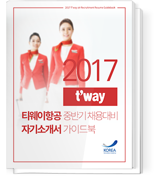 2017 티웨이항공 중반기 자소서 가이드북은 코리아승무원아카데미 학원 강사님께서 직접 제작하신 2017 티웨이항공 중반기 자소서 가이드북입니다. 2017 티웨이항공 중반기 캐빈 객실 승무원을 준비하는 예비 승무원들에게 꼭 필요한 자소서 가이드북입니다. 2017 티웨이항공 중반기 자소서 가이드북 한 권으로 자소서 대비 완료! 코리아승무원아카데미에서 무료 배포해드립니다.