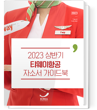 2023 티웨이항공 자소서 가이드북은 코리아승무원아카데미 학원 강사님께서 직접 제작하신 2023 티웨이항공 채용대비 자소서 가이드북입니다. 2023 티웨이항공 채용을 준비하는 예비 승무원들에게 꼭 필요한 자소서 가이드북입니다. 2023 티웨이항공 채용대비 자소서 가이드북 한 권으로 자소서 대비 완료! 코리아승무원아카데미에서 무료 배포해드립니다.