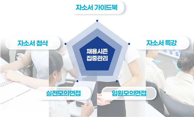 개인별 목표에 따른 국내항공사를 정하고 멘토와 수강생간의 1:1개인분석 및 취업컨설팅을 통해 체계적인 취업전략을 제시하고 승무원 출신 강사진들이 하나하나 세심하게 잡아드립니다.